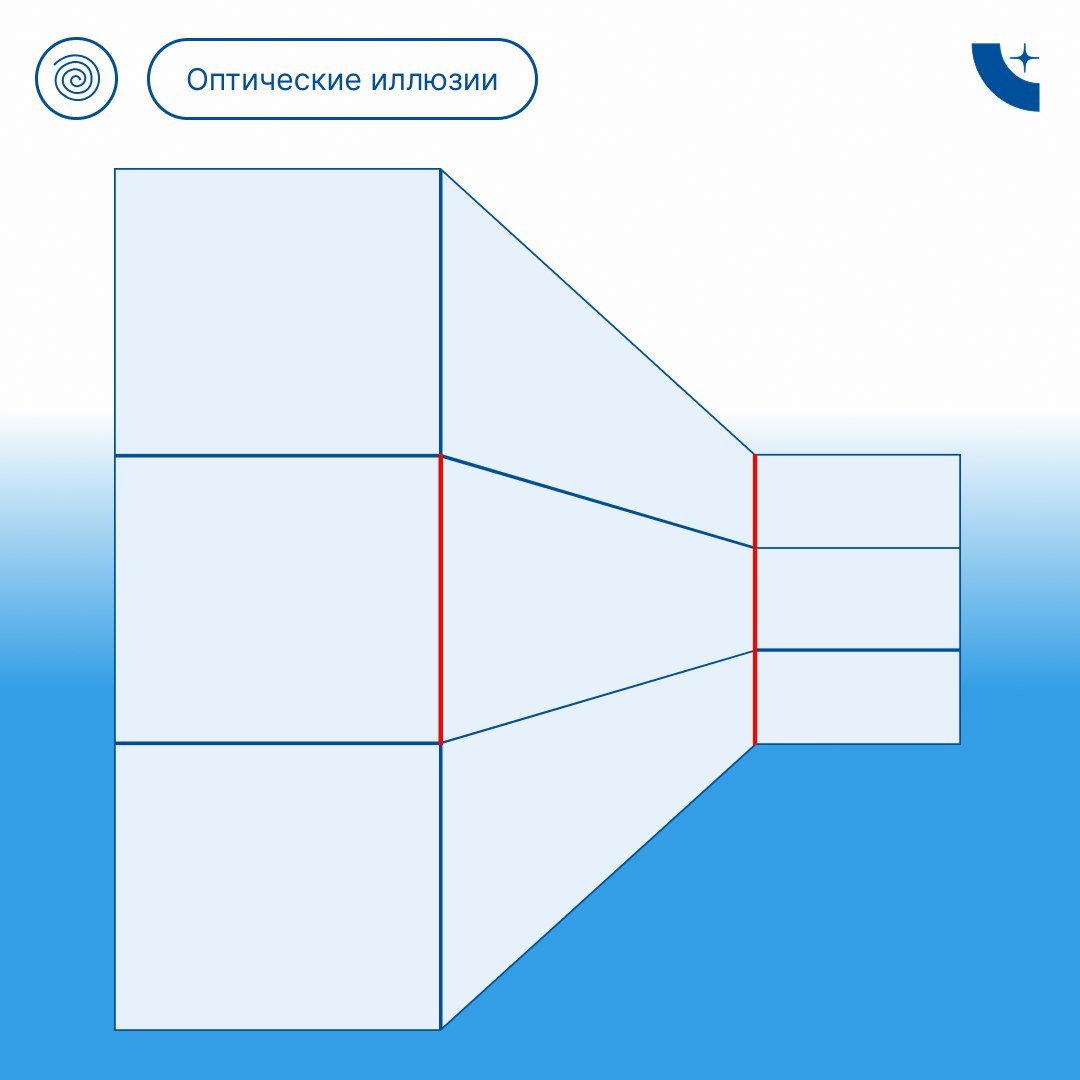 Мы подготовили для вас оптическую иллюзию! Попробуйте сначала разгадать, в чем состоит фокус этой картинки, не читая текст ниже 🔎 В чем же дело? На первый взгляд, красные отрезки на этой картинке имеют разную длину. Но на самом деле они одинаковые! Мозг «читает» перспективу: сходящиеся линии создают ощущение глубины, и дальний объект воспринимается не так, как ближний. 🧠 Проведите пальцем вдоль отрезков или приложите линейку — убедитесь сами. Такие оптические эффекты напоминают: мы видим не только глазами, но и интерпретацией мозга. 👉 Вы можете записаться на диагностику и лазерную коррекцию зрения в любую клинику, на удобную вам дату по бесплатному телефону горячей линии: 88001009876. Чтобы получить скидку и записаться по акции, перейдите на пост со специальным промокодом: https://dzen.ru/media/korrektsiya/-tolko-dlia-podpischikov-nashego-telegram-kanala-korrektsiyazreniya-68db6685ccdb6454066e916e. 18+. Имеются противопоказания, необходима консультация специалиста. ⭐️ Глазные