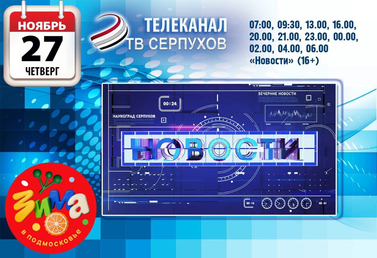 📹 Телепрограмма на четверг 07:00, 09:30, 13.00, 16.00, 20.00, 21.00, 23.00, 00.00, 02.00, 04.00, 06.00 «Новости» (16+) 06.25, 07.25, 21.25 м/ф «Мультфильмы» (6+) 07.45, 17.10 д/ф «Без срока давности» (12+) 08.35, 14.25, 15.50, 16.25, 22.20, 23.25 т/с «Убить Сталина» (16+) 09.55 д/ф «Хранители жизни» (12+) 10.40, 18.00, 23.40, 00.25, 04.45 т/с «Вольная грамота» (16+) 11.40, 13.25, 01.05, 02.25 т/с «У вас будет ребенок» (12+) 13.55, 19.25, 03.20 д/ф «Люди РФ» (12+) 15.15, 03.50, 04.25 д/ф «Энциклопедия загадок» (12+) 18.55, 21.50 д/ф «Большой скачок» (12+) 20.25 «Прямой эфир» (12+) 21.35 программа «Киношка» (16+)