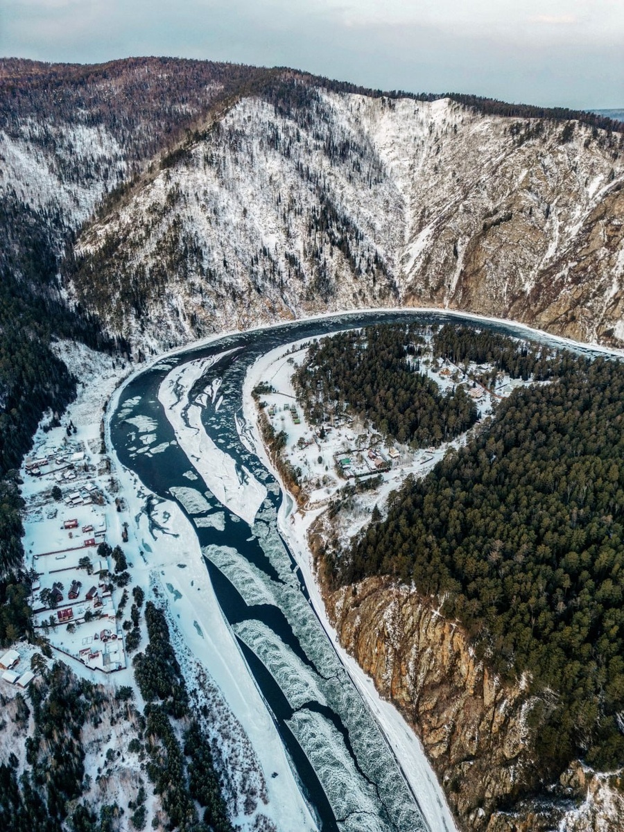 Завораживающие кадры: ледостав на Мане с высоты птичьего полета