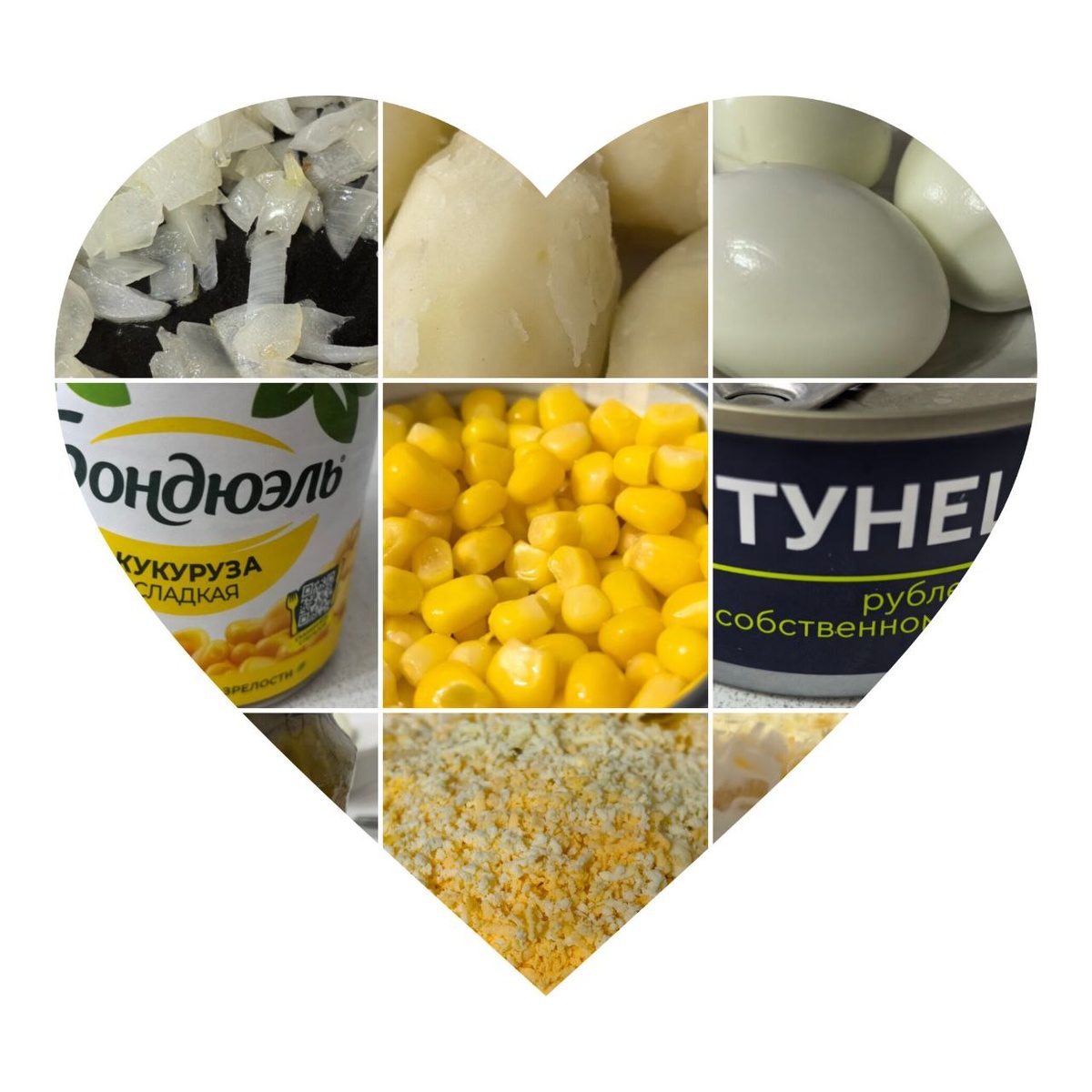 Приготовила салатик по рецепту Ани 🥰 Делюсь рецептом — может, кто-то тоже захочет попробовать! 😉 Ингредиенты: • 2–3 варёных картофелины • 1 банка тунца в консервах • 3 варёных яйца • 2 средних маринованных огурца • 200 г кукурузы в консервах • 1 луковица • майонез, растительное масло Как готовить: 1. Разомните вилкой тунец. 2. Крупно натрите картофель, яйца и огурчики. 3. Лук мелко нашинкуйте и обжарьте до золотистого цвета. 4. Собирайте салат слоями: — картофель — обжаренный лук — тунец и майонез — огурцы — белок и майонез — кукуруза и майонез А сверху посыпьте салат желтком! 🔥🔥🔥 Приятного аппетита!👌
