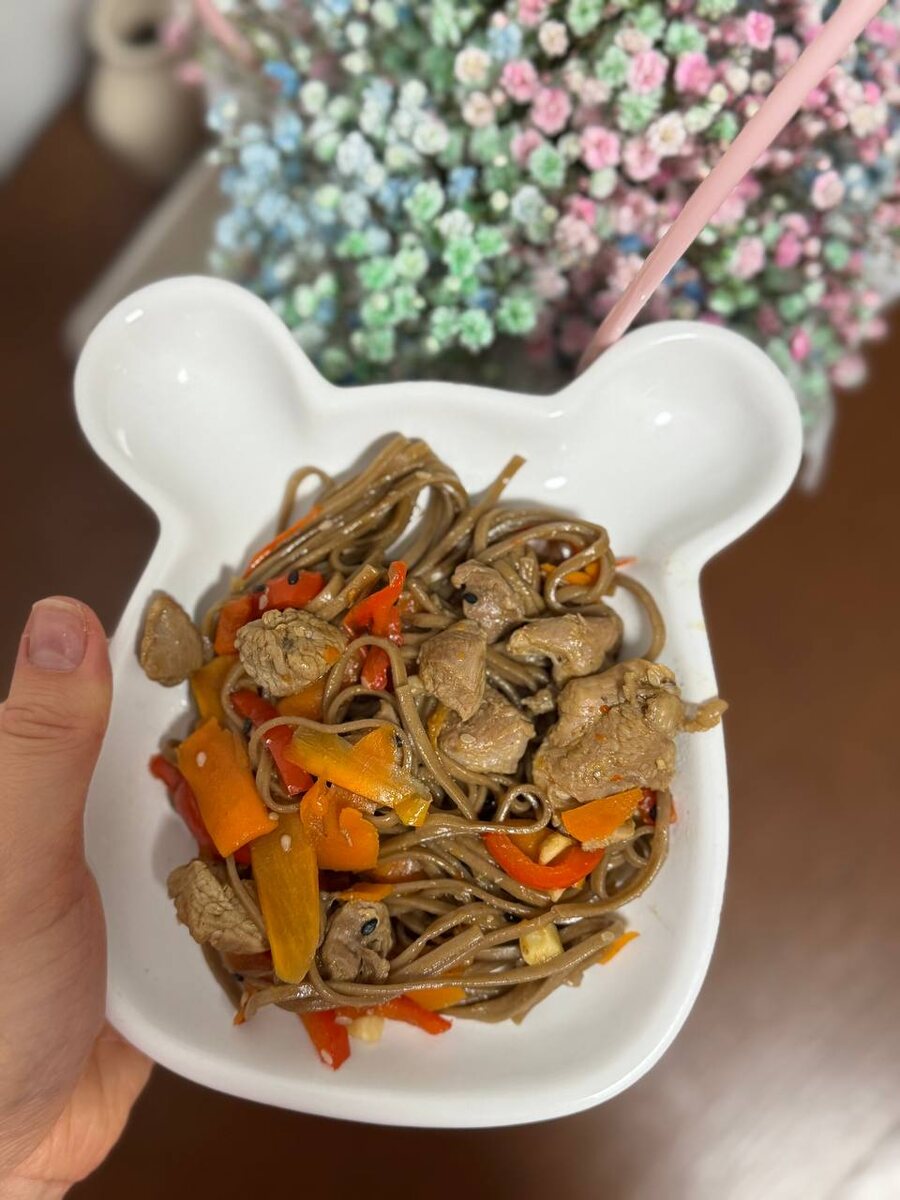 Прошу понять и простить 🙏🏻 У мамы в декрете , время , когда можно чуть подольше отвлечься на телефон - это время сна ребенка и если не успел в обеденный сон, то делаешь в ночной.. Вот я чаще всего в ночной рецепты то и публикую.. 🤫 Идея вам для завтрашнего ужина .. Все очень просто! Гречневая лапша с курицей и овощами (1+)🍝 Ингредиенты: - гречневая лапша соба - 1,5 букетика - морковка - 1 шт. (средняя) - болгарский перчик - 1/2 шт. - филе бедра/грудку/стейк/медальоны (на ваш выбор) - 400 г - чеснок - 3 зубчика - соевый соус - 4 ст.л. - сок лимона ≈ 2 ст.л. - кунжут Готовим🥣: 1️⃣морковь соломкой натереть (можно прям овощечисткой, получается здорово) 2️⃣перчик нарезать соломкой, филе порубить как удобно 3️⃣на масле обжарить сначала филе до белой корочки, затем добавить морковку и чеснок , потушить 5 мин. ( можно добавить кипяток при необходимости) 4️⃣добавить перчик и тушить 15 мин до готовности, помешивая 5️⃣ пока овощи тушатся, в кипяток (подсоленый) выложить лапшу и варить