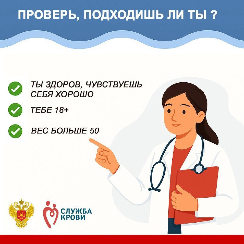 🩸Хотите стать донором, но не знаете с чего начать? Всемирный день донора крови - отличный повод! Вот несколько простых шагов, которые отделяют вас от возможности стать чьим-то героем! Донорство - это спасение жизней! 1️⃣ Убедитесь, что вы подходите: ✔️ Возраст 18+ ✔️ Вес > 50 кг ✔️ Нет хронических заболеваний и противопоказаний 2️⃣ Подготовьтесь заранее: 🚫 48 часов без алкоголя 🚫 72 часа без анальгетиков и аспирина 🍽 Накануне — лёгкий ужин (исключите жирное, жареное и молочное) 3️⃣ Утром — лёгкий завтрак: Каша на воде, чай и сухари — отличный выбор! 📄 Не забудьте паспорт и СНИЛС! 4️⃣ В центре крови: Врач осмотрит вас и возьмёт анализы. Если всё хорошо — вас допустят к донации. 5️⃣ Сдача крови или компонентов: 🔜 Займёт от 10 до 60 минут. 6️⃣ Отдых и восстановление: 🍫 10–15 минут отдыха, сок и шоколад. 📄 Получите справку и компенсацию на питание. 7️⃣ Повторные донации: 👨 Мужчины — кровь через 60 дней, до 5 раз в год 👩 Женщины — кровь через 60 дней, до 4 раз в год 💉Комп