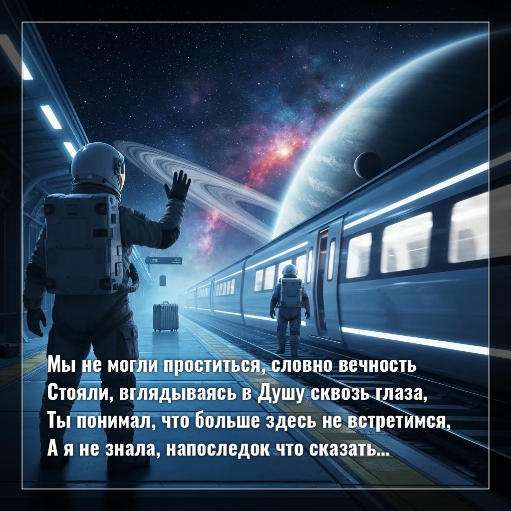 Мы не могли проститься, словно вечность Стояли, вглядываясь в Душу сквозь глаза, Ты понимал, что больше здесь не встретимся, А я не знала, напоследок что сказать, Не знала, как нам надышаться тем мгновением, Когда нет ничего вокруг, есть только мы, Сказать не знала как, что мы последний раз Друг в друга были здесь настолько влюблены, Что даже шторм и вьюга не были преградой, Что даже зависть не могла нас развести, Что козни тёмных не смогли нас поломать, Мы продолжали просто тихо здесь цвести. И вот, стоим, прощаясь, как уже однажды В одной из жизней, грустно покидать тела, Ведь всё равно потом придётся вспоминать, Чьи так волнуют на Земле дела, И почему опять не можешь ты уснуть, Знакомый взгляд, что трепет в сердце вызывает, Вот мы опять с тобой прощаемся «навеки», И колкий ветер только рядом завывает. 27.11.25