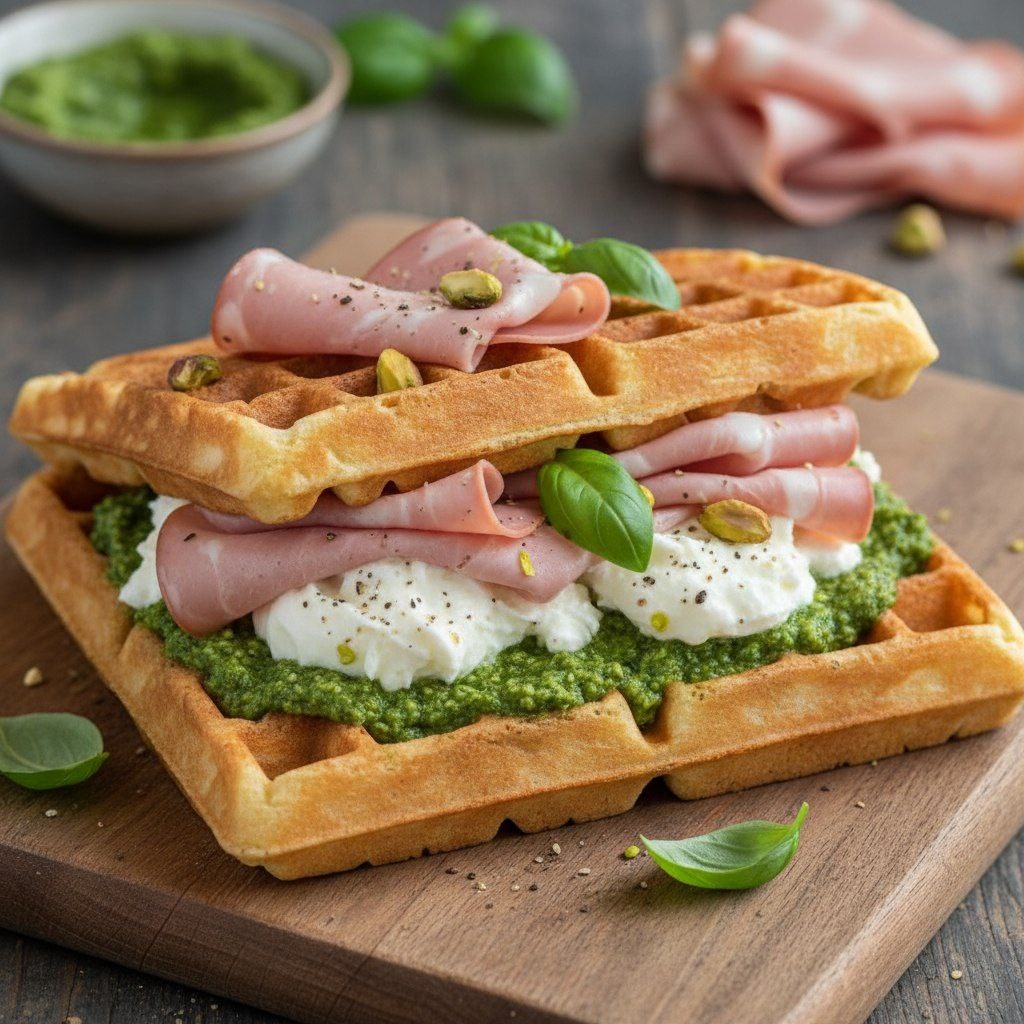 С радостью представляем новинку в нашем меню! Попробуйте нашу уникальную симфонию вкуса: вафля с нежной мортаделлой, кремовой страчателлой и ароматным соусом песто. Это гастрономическое открытие, которое нельзя пропустить!🧇☺️