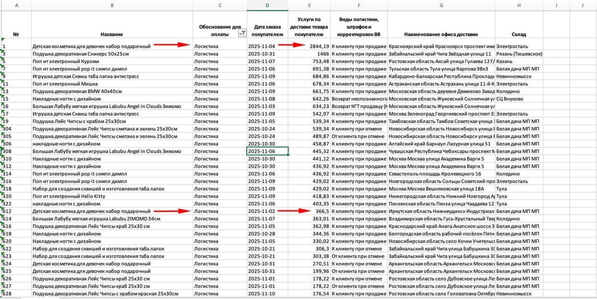 В чем дело? 😱 ▪️ Даже я не очень понимаю в чем проблема... как бы высокопарно это ни звучало 😳 ▪️ В одном из кабинетов у нас третью неделю подряд начисляется конская логистика на товары, которые, продаваясь в тот же или на следующий день, считаются по абсолютно другому нормальному тарифу... (на скрине) ▪️ Был ли у вас подобный прецедент именно в ноябре/конце октября? Если да, то решился ли как-то вопрос, или хотя бы появилось понимание, почему так случилось?