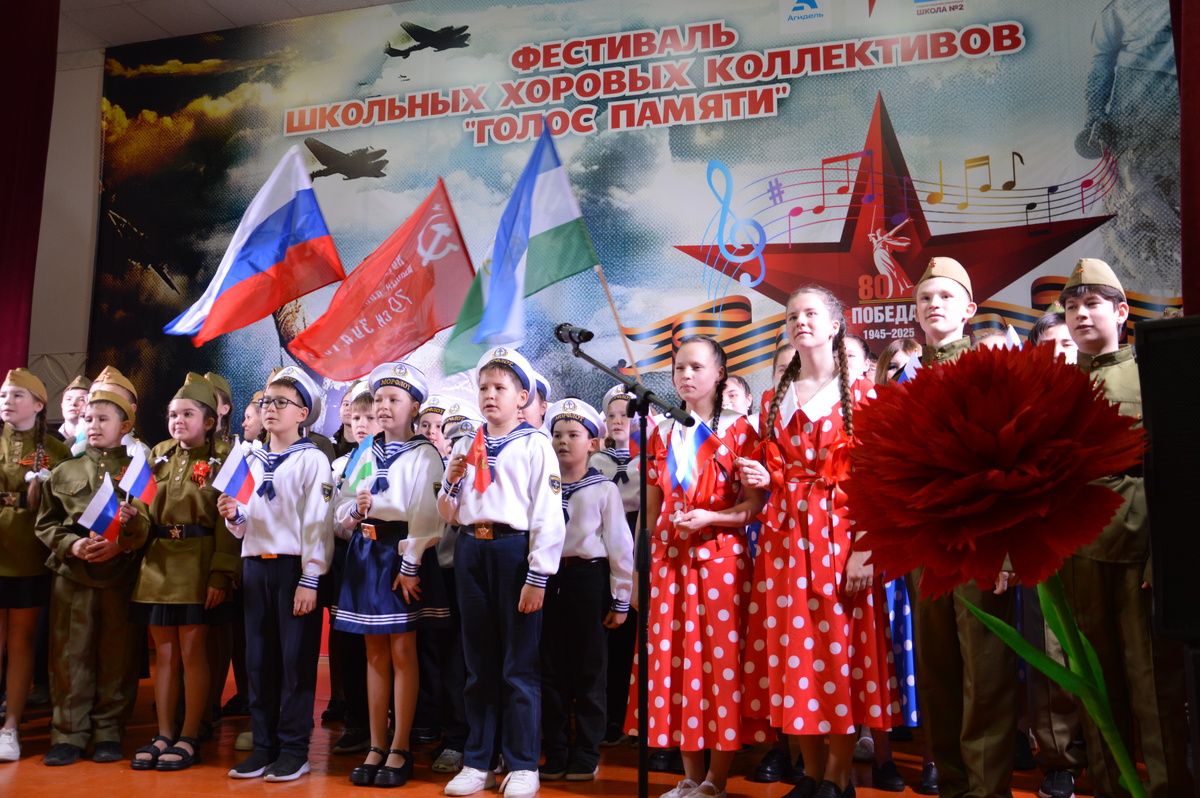 В школе №2 завершился грандиозный фестиваль школьных хоров «Голос памяти», посвященный 80-летию Победы в Великой Отечественной войне. Этот масштабный проект стал реальностью благодаря победе в грантовом конкурсе Российского движения детей и молодежи «Движение Первых», которая принесла коллективу школы полтора миллиона рублей. На эти средства было приобретено современное оборудование: музыкальная аппаратура, светодиодный экран, интерактивная трибуна и аутентичные костюмы военных лет, что позволило придать мероприятию особую торжественность и глубину. Фестиваль, длившийся три месяца, прошел в три этапа, объединив учеников всех возрастов — от самых маленьких до старшеклассников. Особой теплотой отличалось то, что на каждом этапе детей поддерживали родители, выходя на сцену вместе с ними. Всего в ходе фестиваля дети спели около трех десятков песен. «Это не только конкурс, это Голос памяти, который объединяет поколения. Голос памяти — это голос, который говорит с нами мелодиями военных лет,
