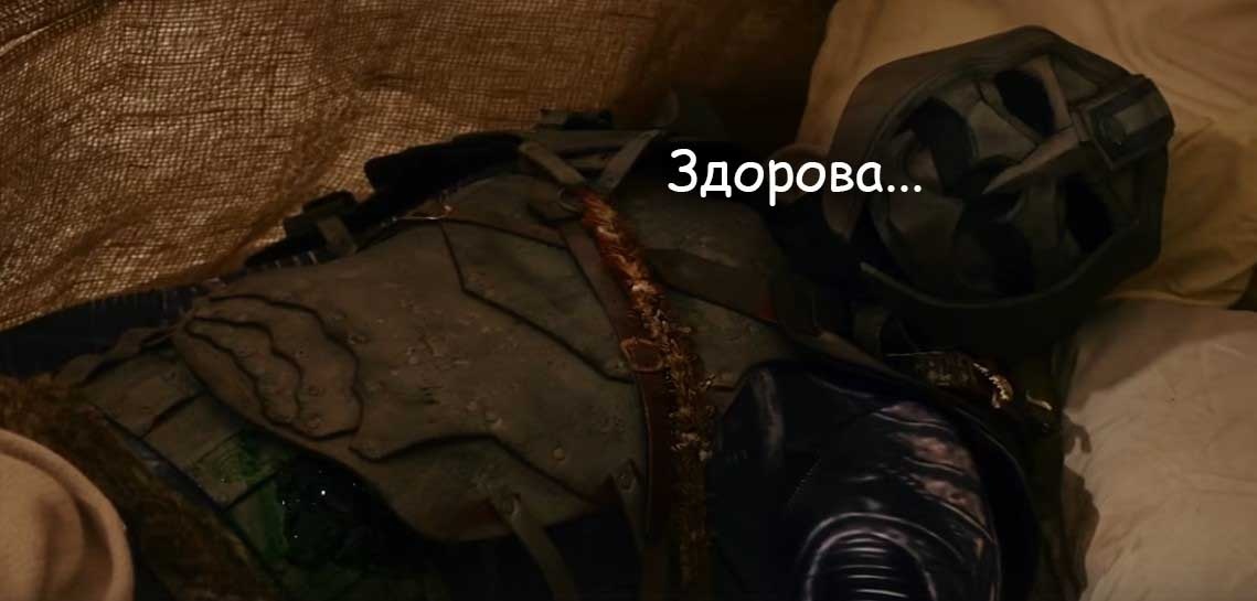 Пока вооруженные люди Балама глумятся над беззащитными крестьянами, на планету приземляется космолёт, управляемый каким-то гуманоидным пришельцем. На вид этот пришелец не более чем высокий мужик в идиотском костюме, и так оно и есть. Костюм пришельца выглядит как комплект детского термобелья, поверх которого налепили несуразную броню, а шлем пришельца внешне напоминает маску Зеленого гоблина, если бы Зеленый гоблин плотно присел на вещества. Я имею в виду, что местный пришелец ужасен, но он есть, и он вот-вот приземлится на планете.