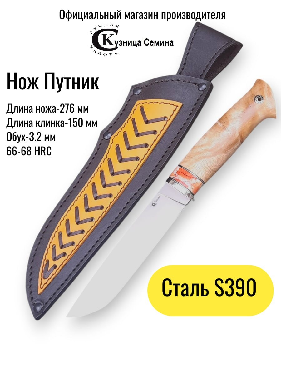 📌Нож сталь S390 Путник рукоять зуб мамонта, сувель, ножны ножны из натуральной кожи Общая длина - 276 мм Длина клинка - 150 мм Ширина клинка - 29 мм Толщина клинка - 3.2 мм Длина рукояти - 126 мм Твердость клинка, 66-68 HRC Вес - 178 гр. размер клинка, рукояти, вес может незначительно отличаться от указанной. 👉Для заказа ☎️89200005141 Татьяна Ссылка на нож OZON:https://ozon.ru/t/39agHOC Ссылка на наш магазин OZON:https://www.ozon.ru/seller/kuznitsa-semina-proizvoditel-semin-knife-ru-1178800/?miniapp=seller_1178800 В этом посте есть большое видео, которое не загрузилось в Дзен. Откройте оригинал поста в телеграме, чтобы его посмотреть