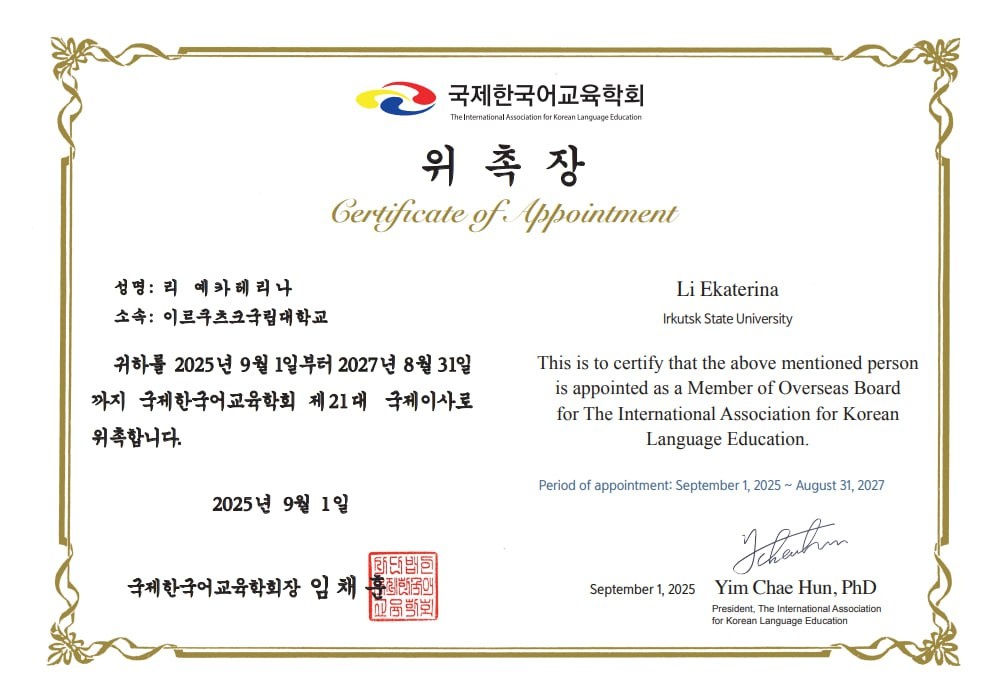 Мои полномочия как Члена зарубежного совета Международной Ассоциации преподавателей корейского языке продлили еще на 2 года