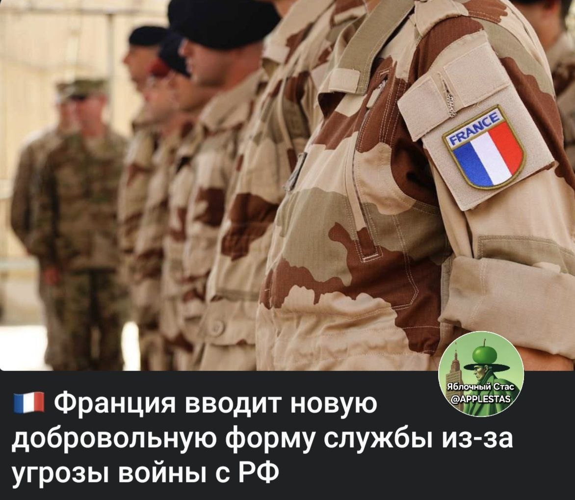 В программе обучения французских добровольцев только самые важные дисциплины на случай войны с Россией: - шитье белого флага из комплектных трусиков. - как не потерять круассан при бегстве с позиций. - уроки русского: "не бейте", "дайте поесть", "я парамедик-трансгендер", "Макрон – петух" и другие полезные фразы. Яблочный Стас