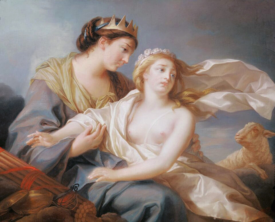Целью французской художницы Мари-Элизабет-Луизы Виже-Лебрён (1755–1842) было поступление в Королевскую академию. Для этого ей надо было почаще практиковаться в исторической живописи, любимом жанре Академии. В 1779 году она выполнила пастелью аллегорию «Невинность и справедливость» (Музей Анжера), а в 1780 году – картину «Мир, возвращающий изобилие». Для амбициозной художницы избрание в Королевскую академию имело решающее значение. Не принадлежа к этой августейшей организации, художник не мог выставляться в Салоне, и меценатство было строго ограничено. Женщины-академики уже были, но их число было ограничено, и все они работали в менее значимых жанрах. Директор, Жан Батист Мари Пьер, упорно возражал против кандидатуры Виже-Лебрён, поскольку её муж был торговцем, а устав Королевской академии исключал всех, кто был связан с торговлей произведениями искусства. Требовалось распоряжение короля. Здесь на помощь пришла Мария-Антуанетта, ведь Виже-Лебрён была её любимой художницей. Людови