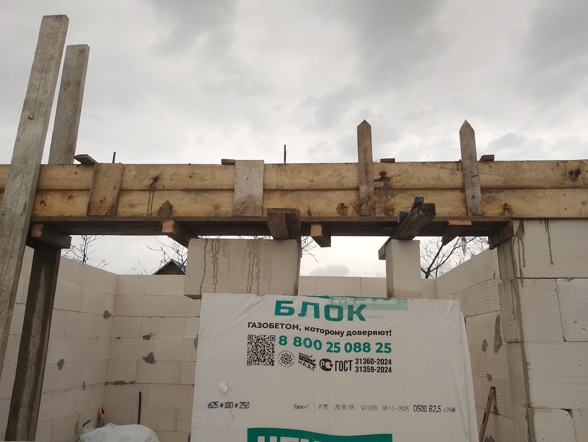 Здравствуйте! Диван опять отменяется, как и приготовление каких нибудь вкусняшек на мангале, тандыре, или коптильне. Нужно, пока время есть залить перемычку над большим окном в комнату отдыха в будущей бане. ТАк что утро началось со сварки арматурной конструкции на перемычку. Опять же использовал десятую арматуру. Четыре нитки. Сваривал так, что бы каркас находился на на одинаковом расстоянии от опалубки. Ширина проема будет три метра с не большим, так что конструкция получилась довольно внушительная. Закинул, установил опалубку из досок. Поддон перегородочного газоблока как раз стоит в будущем проеме, так что с подпором опалубки снизу можно сказать повезло. Не пришлось городить какие то лишние стойки. Можно и заливать. Но бетономешалка на втором участке, а там еще сначала нужно залить отмостку вокруг беседки, жена давно ругается, что ей надо вокруг беседки выровнять и что то там посадить, а у меня еще не доделано. Так что пришлось сначала там установить опалубку, заармировать