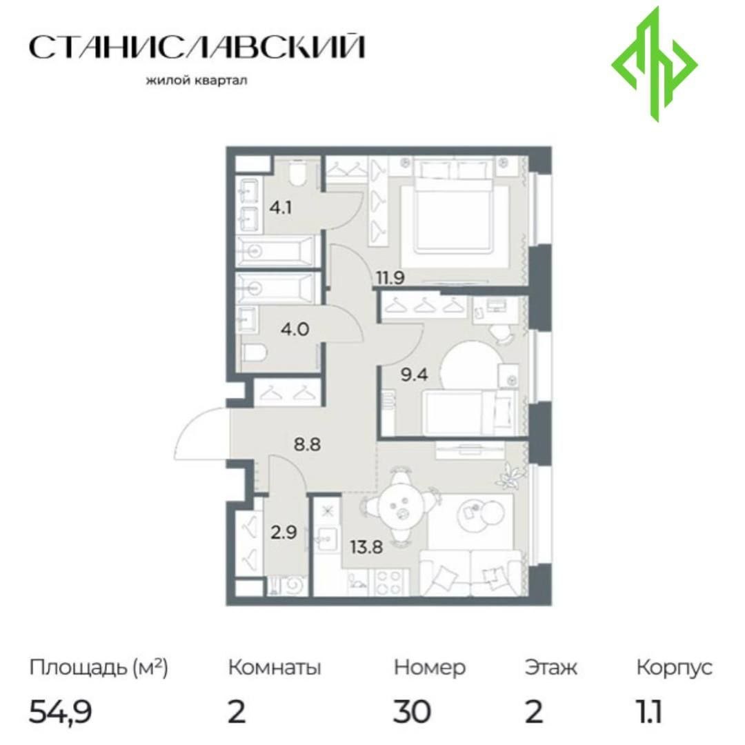 🌤Квартира недели Просторная и функциональная двухкомнатная квартира в Жилом Квартале «Станиславский» со скидкой 10%: мастер-спальня с собственным санузлом, отдельная гардеробная рядом с просторной прихожей, большая кухня-гостиная и второй санузел. Двухкомнатная квартира 54,9 кв.м., 2 этаж, дом 1, корпус 1.1. 🔐Как купить? Семейная ипотека: Стоимость квартиры 17 513 100 руб. Стоимость квартиры со скидкой 10% 15 761 790 руб. Выгода 1 751 310 руб. Бронирование 2% Первоначальный взнос 4 633 966 руб. Ежемесячный платеж 64 827 руб. Беспроцентная рассрочка на 2 года с ежемесячным платежом 1%: Стоимость квартиры 17 513 100 руб. Стоимость квартиры со скидкой 2% 17 162 838 руб. Бронирование 2% Первоначальный взнос 4 633 966 руб. Ежемесячный платёж 1% 108 126 руб. Платеж в конце срока рассрочки 8 325 693 руб. По окончании срока рассрочки возможен переход на ипотеку ➡️Для бронирования пишите