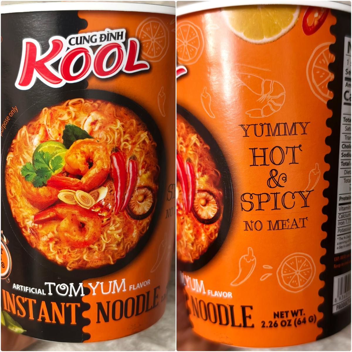 Всем привет! Очередной ТомЯм быстрого приготовления в моей коллекции. На этот раз от вьетнамского бренда Cung Dinh Kool. Ну во Вьетнаме то думаю умеют его делать. Обошёлся в 159 рублей в Фамилии. Такой ещё я видел в Перекрестке, но за 189 рублей. Изготовитель: Азия Фуд Технолоджи, Вьетнам. В составе пшеничная лапша, приправа с креветочным порошком и рыбным соусом, пальмовомасляная заправка с лемонграссом и перцем. Как-то мало специй для том яма. Масса 64 грамма. Интересный способ приготовления. "Откройте крышку и разломайте". За что её так? Всего 280 калорий. Негусто однако. Такой лапшой точно не насытишься. Удобная фольгированная крышка. Зачем ее разламывать то? Она легко открывается и потом закрывается. В комплекте вилка, суповая основа и немного пальмового масла. Закладываю все в стакан и завариваю. Через несколько минут блюдо готово. Лапша не самая плохая. Приемлемого качества. Бульон на вкус кисло-острый. Острота приличная. До конца допивать бульон не стал. Преобладае