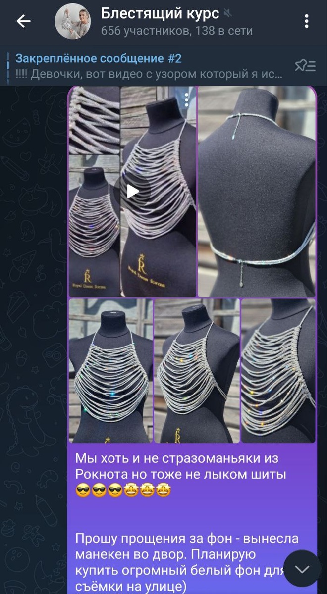 Пути интернета неисповедимы😂😂😂😂 В мае 2024го, в разгар нашей стразовой тусовки на Блестящем курсе от Кати Walls (в те далёкие времена когда стразовый был только в 4х цветах 😂😂😂), я намутила простенький топ и прям в группе для участников закинула видео как его сплести... классное было время - в том чате к курсу мы столько первопрохождений сделали в мире стразового шнура🧗♀️☺️☺️☺️ Спустя какое то время я кинула фото этого топа и в Пинтерест... и видимо этот топ запал мастерам в какие то особенные глубинные чертоги сердечные - что он до сих пор набирает лайки и периодически всплывает в разных местах, типа презентаций, примеров, хотелок на мк и т.п...😁🫣🫣🫣 я уже и смирилась что топчик ушёл своё свободное самостоятельное плавание. И вот сегодня очередное макрамешное провидение😁😆 пару часов назад слушала интервью с Дашей Котик где она с интервьюером обсуждает тему маркировки своих фото на Пинтерест по причине того что их любят тырить другие мастера для своих рефференсев и проч
