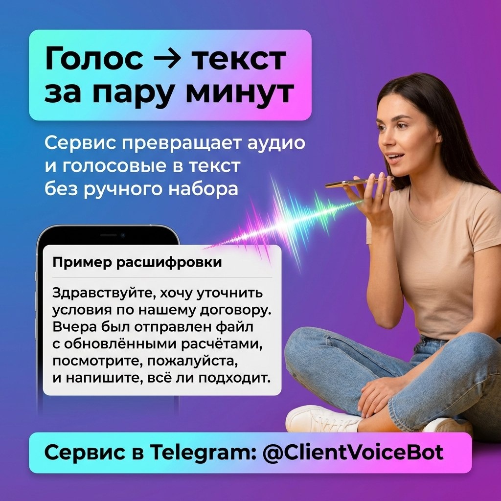 Голосовые и аудиозаписи копятся пачками: созвоны, консультации, рабочие обсуждения, сообщения от семьи. Всё вроде сохранено, но как только нужно быстро найти конкретную фразу или точную договорённость, начинается бесконечная перемотка. 🎙 Здесь выручает одноканальная транскрибация. Есть одна запись с одного источника звука - вы говорите в телефон или записываете встречу. Нейросеть берёт этот файл и превращает его в сплошной читабельный текст без лишних настроек и технических танцев. @ClientVoiceBot как раз про это: вы пересылаете ему голосовое или аудиофайл, в ответ получаете аккуратный текст на русском. Его удобно вставить в заметку, задачу, протокол, письмо или карточку клиента - не "вроде об этом говорили", а конкретные формулировки: условия, сроки, вопросы, идеи. Попробуйте взять одно важное голосовое, которое давно откладывали, отправьте его боту и посмотрите, как меняются ощущения, когда вместо длинной дорожки у вас перед глазами обычный текст 📝. #ClientVoiceBot #голосвтекст