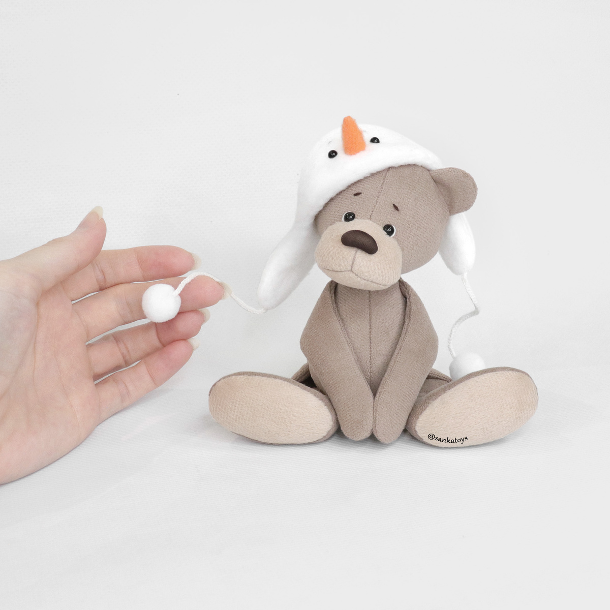 Еще одно пополнение в Новогоднюю коллекцию 🎄😊 Мишка в мягкой пушистой шапке (снеговик). Получился очень трогательный малыш. Рост ~16см (сидя 11см). Все детали вшиваются, в ручки добавила магнитики, шапочка съемная. Мишка в шапке снеговик (VK) Мишка в шапке снеговик (Boosty)