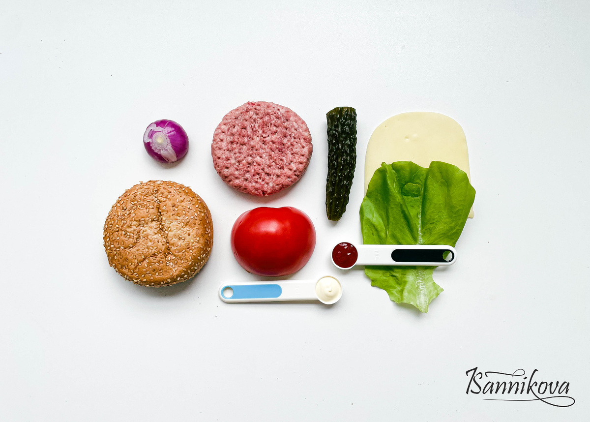 Ссылка на рецепт: https://ksenia-sannikova.ru/fast-food/cat15/recipe529/ Список ингредиентов: булочка - 1 шт; котлета - 1 шт (130 гр); помидор - 25 гр; красный лук - 15 гр; маринованный огурец - 15 гр; майонез - 15 гр; кетчуп - 15 гр; сыр (на ваш вкус) - 1 слайс. Этапы приготовления: 1. булочку разрезать пополам, поджарить, одну половину намазать майонезом, другую кетчупом 2. помидор нарезать слайсем, толщиной не более 5 мм, красный лук — кольцами, толщина 1 — 2 мм, огурец нарезать кружками, толщиной 1 — 2 мм 3. на дно булочки выложить огурец 4. затем котлету (обжарить до готовности) Примечание: в данном рецепте использовалась уже готовая котлета для бургеров в охлажденном виде. 5. на горячую котлету выложить сыр 6. затем красный лук 7. далее лист салата и помидор 8. сверху накрыть булочкой и слегка придавить 9. бургер с маринованными огурцами, сыром и овощами готов, сразу подавать к столу