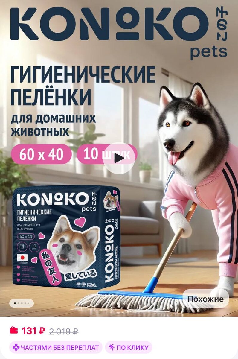 KONOKO Пеленки одноразовые для собак 40х60 10 шт