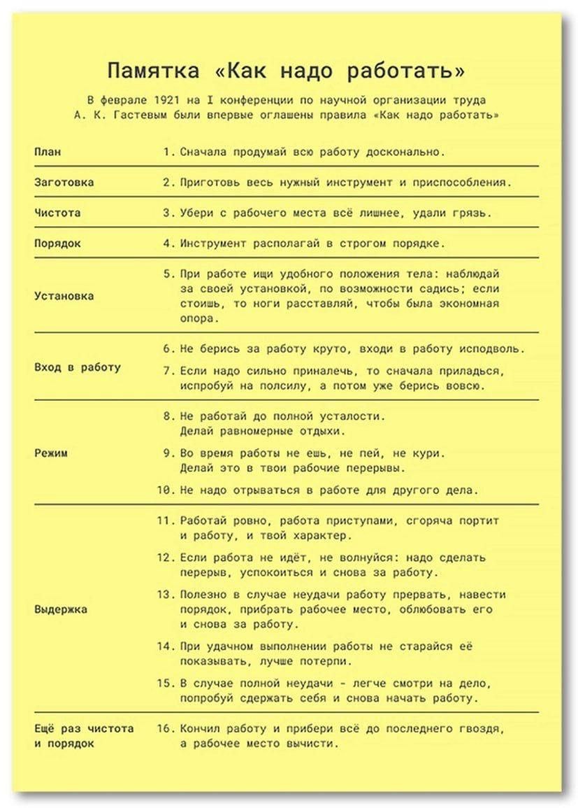 Советский подход к непрерывному улучшению🍂 Задолго до японских методик и западных книг по эффективности, в 1921 году советский деятель Алексей Гастев создал целую систему научной организации труда. Гастеву принадлежит и следующая прекрасная мысль: «Мы проводим на работе лучшую часть своей жизни. Нужно же научиться так работать, чтобы работа была легка и чтобы она была постоянной жизненной школой». Он считал, что человек и машина должны работать в едином ритме — точно, ритмично и осознанно. «Работа должна быть доведена до автоматизма. Тогда появляется возможность творчества» Советский подход, по сути, аналогичный кайдзен-философии, включал постоянное стремление к улучшению, сосредоточенность на процессе и уважение к труду. 👩💻 Актуально? Бесспорно! #всеовеллбин