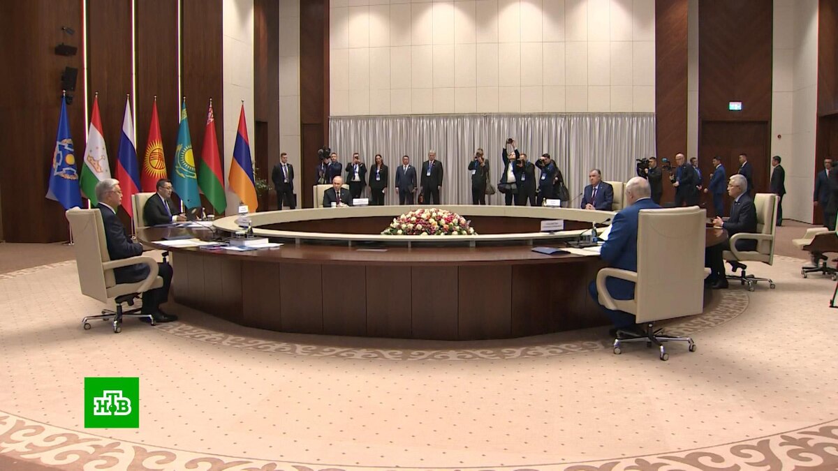 [ Смотреть видео на сайте НТВ ] В столице Киргизии Бишкеке проходит заседание Совета ОДКБ. Обсуждают вопросы сотрудничества стран-участниц, в том числе в сфере противодействия незаконному обороту наркотиков и незаконной миграции. В заседании принимает участие российский лидер, который сейчас находится в стране с государственным визитом. Сессия лидеров государств ОДКБ проводится для подведения промежуточных итогов совместной работы — в данном случае года председательства Киргизии. Владимир Путин, глава государства, к которому в следующем году переходит председательство в организации, поделился приоритетами России внутри и на границах ОДКБ. Российский лидер рассказал подробнее о том, как наша страна планирует поддерживать архитектуру равной и неделимой евразийской безопасности. Так, Путин предложил запустить масштабную программу перевооружения коллективных сил ОДКБ современным российским оружием. «Предлагаем запустить масштабную программу оснащения коллективных сил современными образцами