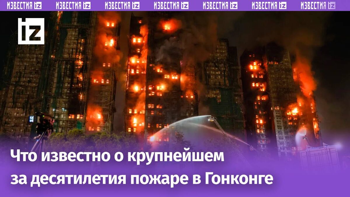 В результате пожара в жилом комплексе Гонконга погибли 55 человек, 76 пострадали и 300 пропали без вести, сообщает газета города South China Morning Post. Огонь вспыхнул еще вчера, 26 ноября. Председатель КНР Си Цзиньпин призвал местных властей других районов помочь спасти людей. Что известно о пожаре и его последствиях — в материале «Известий». На севере Гонконга в высотном жилом комплексе Wang Fuk Court с 26 ноября около 10:00 по Москве бушует пожар. На данный момент известно о 55 погибших (один из них пожарный) и 76 пострадавших, 45 из которых госпитализированы и находятся в критическом состоянии. Пропало без вести около 300 человек. Жителей соседних районов эвакуировали. Wang Fuk Court — комплекс из восьми зданий до 32 этажей каждое. Всего в домах 2000 квартир, в которых жили 4800 человек. Как пишет Reuters, жители комплекса преимущественно старше 65 лет. Спасательные службы утром 27 ноября взяли огонь под контроль, но еще не потушили его. По прогнозам пожарных, тушение продлится м