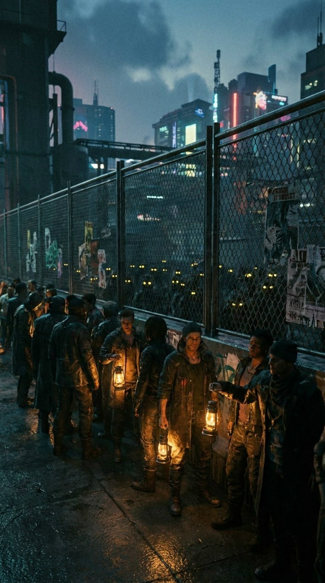 Тема: Свистульки Жанр: Киберпанк Звонкая трель свистульки оглушила всю округу. Ровно 21:00. Все, кто находился на улице, выстроились в шеренги по три человека и мерным шагом проследовали в сторону бункеров. Марк встал в ряд с ещё одним парнем из соседнего барака и пожилым мужчиной. Гул шагов эхом отдавался от заборов, обшитых металлическими листами. Подразумевалось, что они должны защитить людей от нападения киборгов, но мало кто в это верил. Вряд ли их остановит хлипкий лист железа. Над толпой заиграла музыка и веселый голос диктора начал зачитывать новости. Впрочем, новостями назвать их трудно, потому как изо дня в день говорилось об одном и том же: сколько плат было произведено, сколько батарей из них собрано, как отработали соседние поселения и какие планы ждут их впереди. А заканчивался спич тем, как верхушка заботится о них, даёт им кров, пищу и оберегает от нападений "нелюдей". Но что-то сегодня было не так, как всегда. Сопровождающие охранники постоянно их подгоняли, то и дело