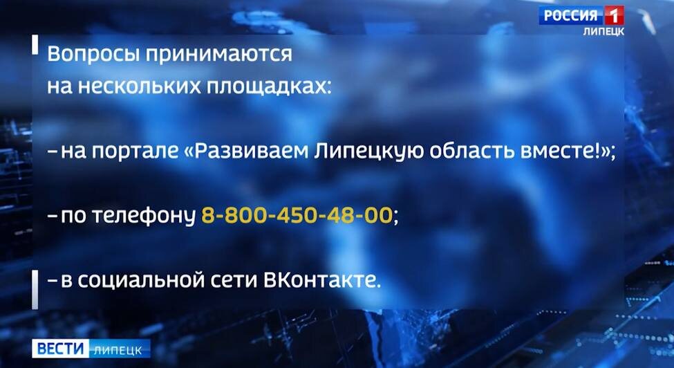 Губернатор Липецкой области Игорь Артамонов сегодня ответит на вопросы жителей