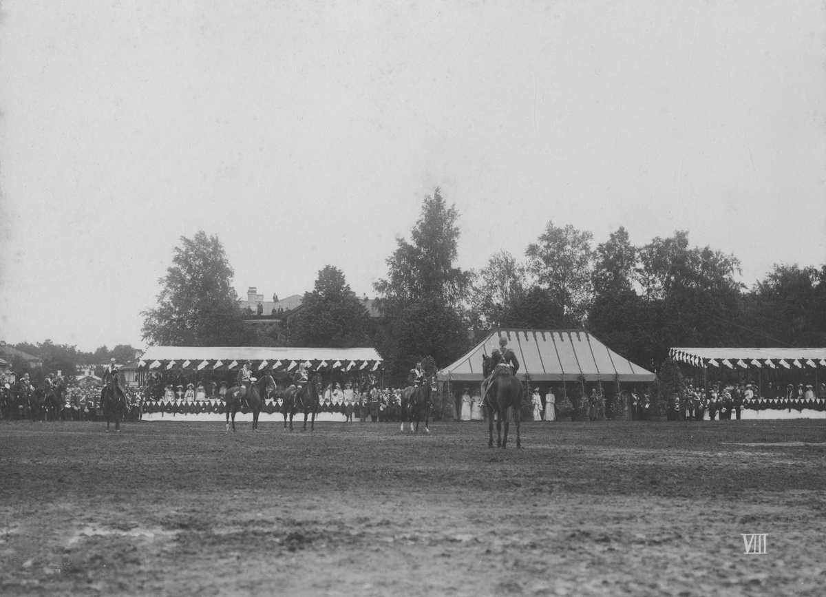 А вот что за событие отражено на снимке, нам помогли выяснить специалисты Российского государственного архива кинофотодокументов (РГАКФД). В письме они сообщили интересные и приятные подробности: "На фотографии запечатлено празднование 250-летнего юбилея Уланского Его Величества полка, которое проходило в Петергофе 15 мая 1903 года. Находящаяся у вас фотография имеет большую историческую ценность, потому что даже в РГАКФД фотодокументы, запечатлевшие это событие, отсутствуют".