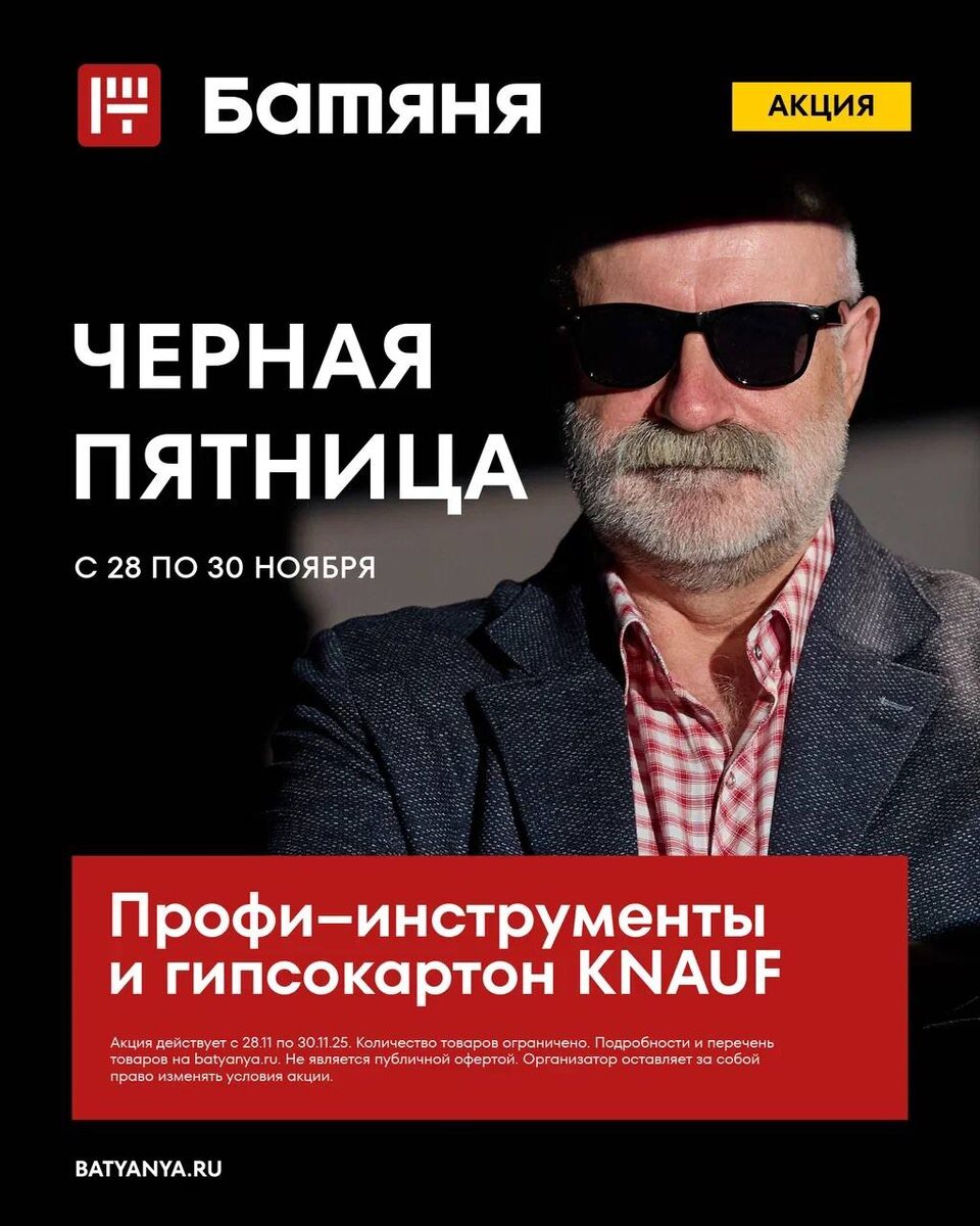 ⚡️ ЧЕРНАЯ ПЯТНИЦА В «БАТЯНЕ»: АПГРЕЙД ДЛЯ НАСТОЯЩИХ ПРОФИ Мастера, виртуозы своего дела, те, кто знает цену качеству и скорости! 👋 В этом году мы не просто объявляем Черную пятницу – мы устраиваем масштабное пополнение вашего арсенала! Приготовьтесь обновить свой инструментарий без удара по бюджету! Вас ждут специальные цены на главные «рабочие лошадки» и «секретное оружие»каждого мастера: — Лампы Лосева — Шпатели «Коршун» — Статоры и роторы — Окрасочные аппараты И это лишь вершина айсберга! Целый склад решений для вашего фронта работ ждет! С 28 по 30 ноября мы делаем уникальное предложение на гипсокартон KNAUF – основу надежности и долговечности! Ваш выбор без компромиссов: — Кнауф 9,5 мм стандарт — Кнауф 9,5 мм влагостойкий — Кнауф 12,5 мм стандарт — Кнауф 12,5 мм влагостойкий — Кнауф Сапфир ⏳ ВСЕГО 72 ЧАСА! НЕ ОТКЛАДЫВАЙТЕ – ТАКИЕ ПРЕДЛОЖЕНИЯ НЕ ЖДУТ!