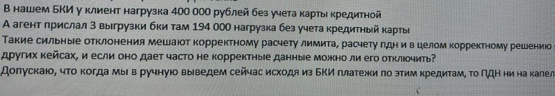 А Алёша молодец 😉 Короче подал вчера вечером заявку в один достаточно крупный банк. Заранее, естественно, я все посмотрел и по нагрузке и по доходам. Утром пишет куратор- "у клиента очень большая нагрузка, не проходит." Я говорю- стоп. У вас не верные данные (я банку пишу)) "Как неверные?" Ну вот бки и общая сводка, говорю им Далее все отражено в скрине. Это часть письма куратора руководсту Куратор пишет письмо руководству, дескать в банке сломалась система проверки кредитной истории. Соответственно, идут не корректно расчёты по нагрузке клиентов. А вы говорите, зачем брокер просит ваши кредитные отчёты. Да, чтобы получить одобрение там, где вы сами получили бы отказ автоматически. Банк крупный очень, не сбербанк)) Нужна помощь в ипотеке пишите @ipotekaprosto1 #кредитныйброкер #помощьвипотеке #кредитнаяистория #просрочки