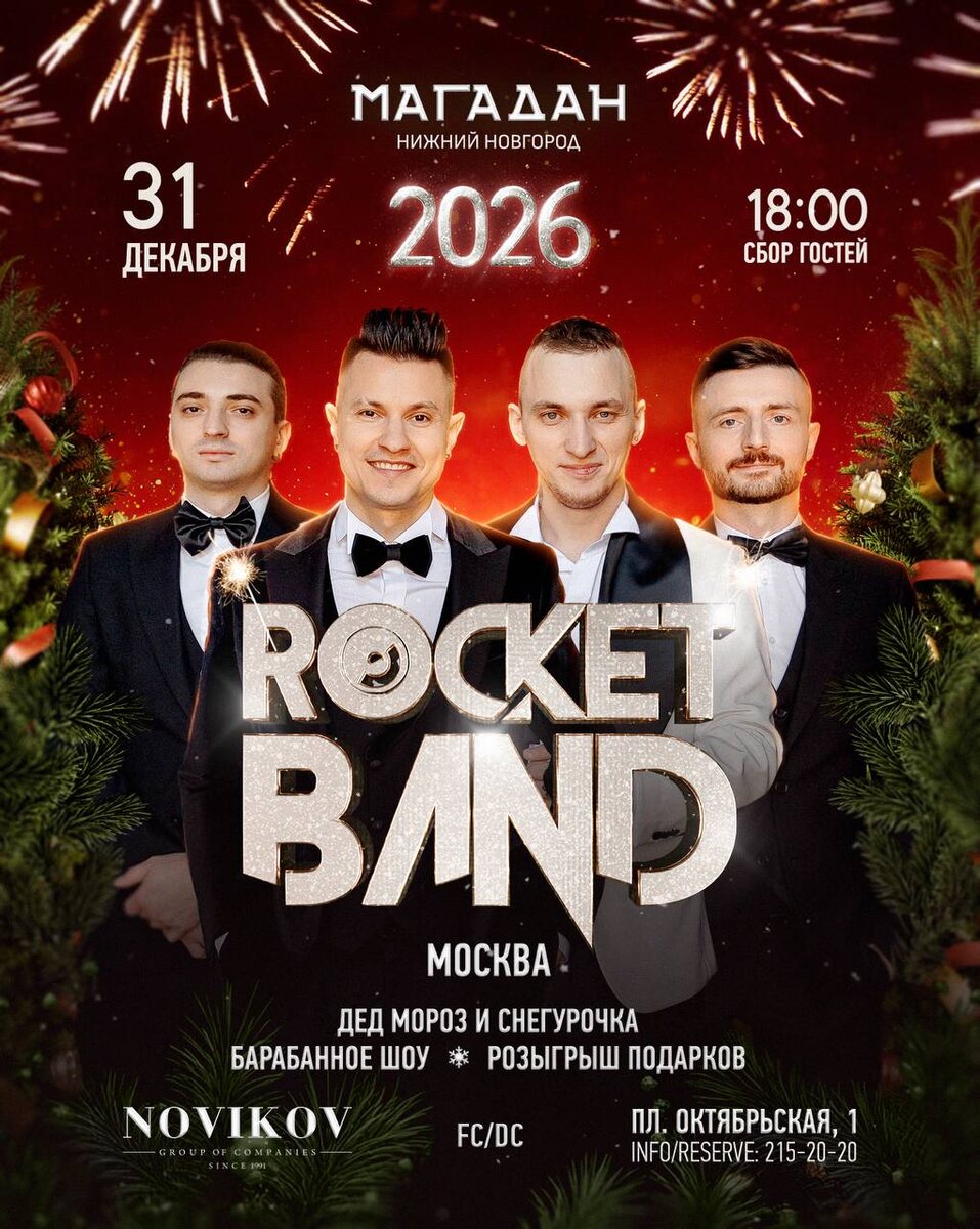 🎄НОВОГОДНЯЯ НОЧЬ🎄 31е Декабря! В МАГАДАНЕ! Ведущий! ▫️Влад Николаенко▫️ Программа вечера! ▫️21:00 — Rude boy ▫️22:00 — Jeff ▫️23:00 — Барабанное шоу ▫️23:30 — Поздравление Деда Мороза и Снегурочки ▫️00:00 — ROCKET BAND (Москва) ▫️01:00 — Real ▫️03:00 — Makeenko Сбор гостей в 21:00. Бронируйте стол: ▫️ Онлайн на сайте ▫️По телефону: +7 (831) 215-20-20 ▫️пл. Октябрьская, 1