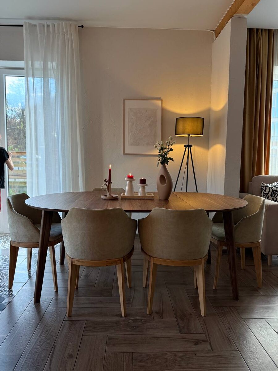 Обеденная группа из дуба и ореха:
