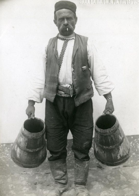 Водовоз с коновками. Татары крымские. Симферополь (?). 1907 год. Автор фото: Дубровский М.И. Желатиновая бумага с проявлением (DOP) Размер: 8,2х11,4 Из фондов: Российский Этнографический музей (РЭМ), Санкт-Петербург. Коллекционный номер: РЭМ 1315-13 Коновка - деревянная высокая кружка, сужающаяся кверху, изготовлялись разных размеров. По Далю: КОНОВКА ж. твер. влад. вор. Коновь стар. деревянная, обручная высокая кружка, с носочком и крышкою на ушках, жбан, конобь, коноб. Коновковый, коновочный, жбанный. Коновчатый, похожий на коновку или на высокую кружку без перехвата, но кверху поуже. Интересно, в крымскотатарском было ли свое название для подобных сосудов? Подобные фото: Симферополь. Водовозы у водокачки. Базарная площадь. #цыгане #этнография #история #Симферополь #общепит #Дубровский