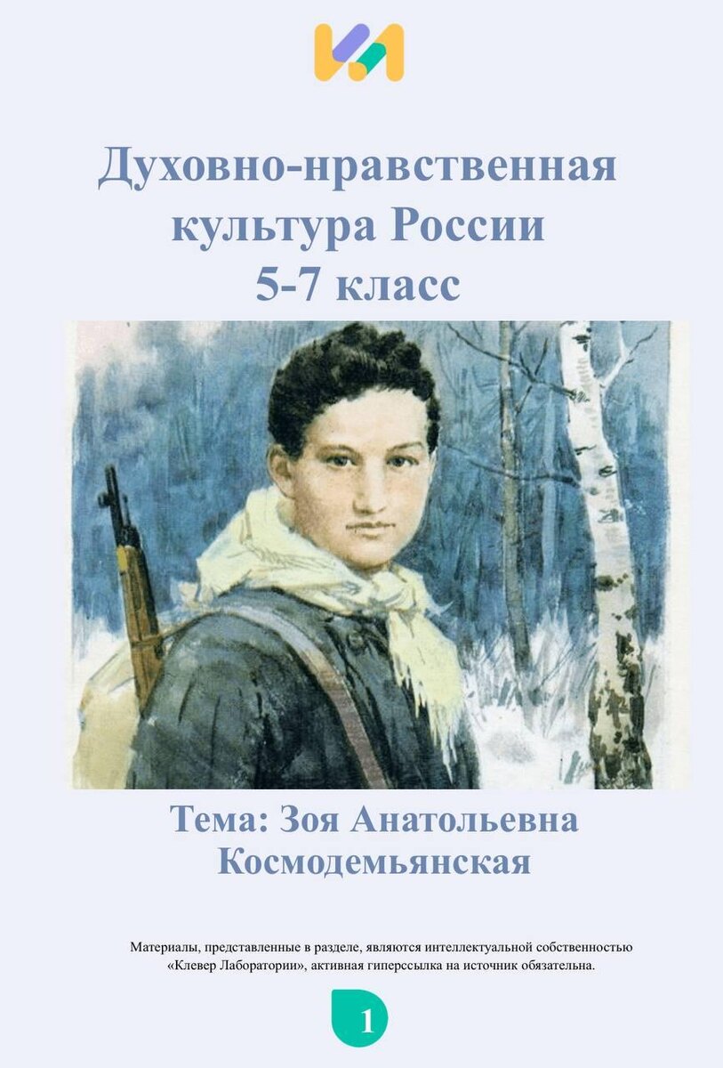 ✍️🏼 Чтобы педагогам было проще провести урок, мы собрали материалы о Зое Космодемьянской. В комплект входят: • Рабочая тетрадь — интересные и разнообразные задания для индивидуальной и групповой работы; • Инфографика к уроку, помогающая визуализировать ключевые сведения; • Дополнительный материал: текст, аудио и видео для учителя и детей; • Биографический текст с описанием жизненного пути и мировоззрения героини. 📝 29 ноября 1941 года 18-летняя Зоя была казнена фашистами. Ее подвиг стал символом мужества и любви к Родине, примером решимости, жертвенности и преданности. На уроках духовно-нравственной культуры ребята смогут обсудить, как личные качества формируют настоящего героя на примере жизни Зои. Все материалы доступны в разделе «Важные даты». Для быстрой навигации используйте тег #ДНКР. Клевер Лаборатория