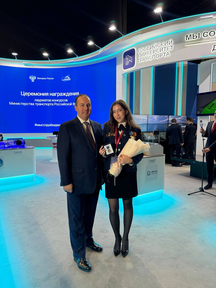 Ушаковцы в числе победителей🎉🎉🎉 В Сириусе, в рамках V Конгресса молодых ученых, прошла церемония награждения победителей конкурсов «Молодые учёные транспортной отрасли» и «Лучший студенческий реферат». Медали вручил первый заместитель Министра транспорта Константин Пашков. От души поздравляем Варвару Власову и Теодора Торию👏👏👏 #ушаковкарф