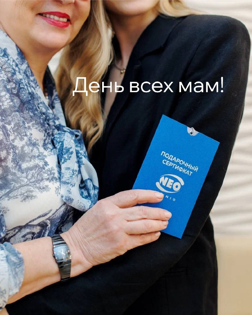 🌸 Мама подарила жизнь — подарите ей заботу о себе. 🌸 В последнее воскресенье ноября в России отмечается День матери и в этот тёплый день мы хотим напомнить, как важна любовь💙 Специально ко Дню матери мы подготовили подарок, полный внимания и заботы — ✨ скидка 10% на подарочные сертификаты клиники. Сертификаты можно оформить на любую сумму, а для ориентира: - 3000 ₽ → 2700 ₽ - 5000 ₽ → 4500 ₽ - 10 000 ₽ → 9000 ₽ Пусть мама получит то, что она действительно заслуживает — время для себя, для красоты, здоровья и восстановления. 🌷 Акция действует до 30 ноября. Количество сертификатов ограниченно