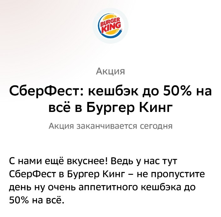 Сегодня бесплатная еда в Бургер Кинге со Сберфестом
