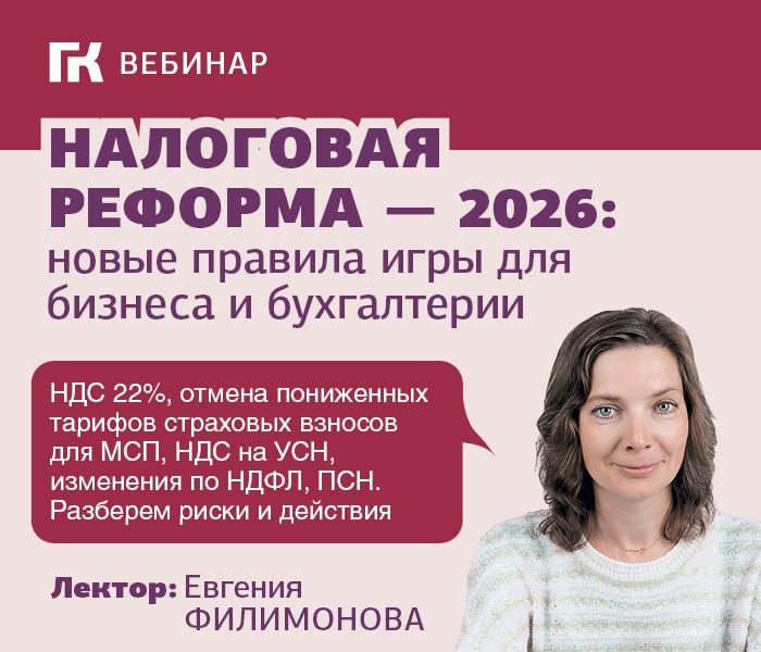 🧐 Есть два вопроса, который нам уже задали ≈ 50 раз 1️⃣ При каком уровне дохода упрощенцам придется платить НДС уже с января 2026 г.? 2️⃣ За чей счет идет доплата НДС по долгосрочным договорам? 💬 Ответы обязательно будут на итоговом вебинаре «Налоговая реформа — 2026: новые правила игры для бизнеса и бухгалтерии», который проведет главный редактор журнала «Главная книга» Евгения Филимонова. Мы предоставим полную раскладку по всем новшествам и, опираясь на судебную практику, подскажем, как избежать финансовых потерь. ❗️Регистрируйтесь на вебинар, пока есть места. Дата и время: 2 декабря, 10:30—13:30, МСК ➡️ Зарегистрироваться