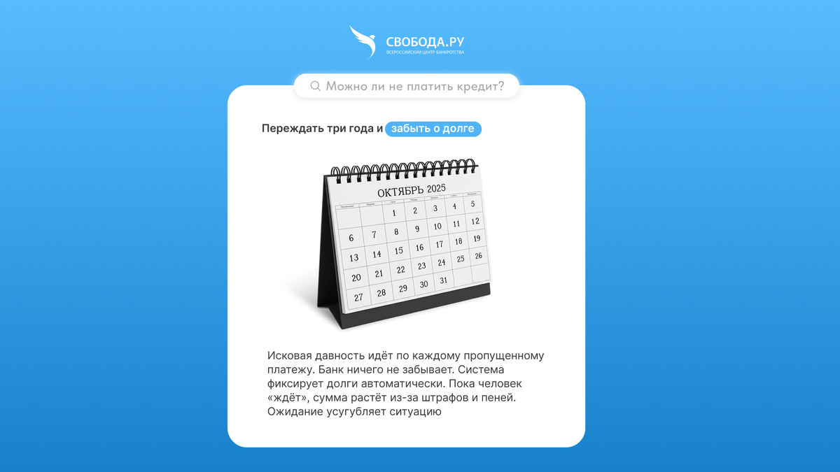 Многие должники считают, что если не платить по кредиту три года, долг «сгорит» сам по себе. Это распространенное заблуждение, которое играет против человека.