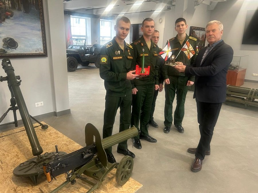Кроме того, курсанты СВАКУ передали научному руководителю Музея «Истории артиллерии и артиллерийского образования», полковнику в отставке, кандидату военных наук Евгению Соколу памятные подарки от начальника Саратовского высшего артиллерийского командного училища полковника Романа Дорохова. Отметим, что Роман Дорохов ыыпускник Коломенского высшего артиллерийского командного училища, офицер-десантник, он прошел службу в Рязанском парашютно-десантном полку, участвовал в контртеррористической операции на Северном Кавказе, в боевых действиях в Сирии, а затем - в специальной военной операции. Полковник Дорохов награжден орденом Мужества, медалью ордена «За заслуги перед Отечеством» I и II степени, медалями «За отвагу» и Суворова.