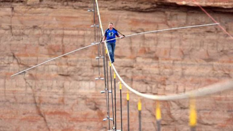 23 июня 2013 года американский канатоходец Ник Валленда пересек по тросу Гранд-Каньон без страховки, установив свой шестой по счету мировой рекорд. Акробат преодолел расстояние 427 метров на высоте около 450 метров за 23 минуты. Позднее Валленда отметил, что на протяжении всего перехода ему нужно было быть вдвойне сконцентрированным из-за неожиданных порывов ветра. Пару раз ему даже пришлось замедлить шаг. Валленда вырос в цирковой семье, и начал карьеру артиста цирка в 13 лет. По его словам он мечтал пересечь Гранд-Каньон без страховки с подросткового возраста, и теперь его мечта, наконец, сбылась. Валленда является представителем седьмого поколения канатоходцев. Многие его родственники, в том числе прадед Карл Валленда, погибли во время исполнения трюков. На его счету уже семь рекордов, занесенных в Книгу рекордов Гиннеса. Самым запоминающимся трюком является переход по канату, растянутому по всему Ниагарскому водопаду. Валленда стал первым человеком, которому покорилось это достижен