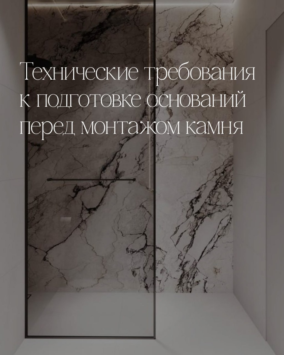 Технические требования к подготовке основания перед монтажом камня: 1. Основание пола Строго в горизонте, без перепадов и локальных неровностей (аналогично подготовке под плитку). 2. Примыкания стен и пола Под углом 90°. 3. Стены Ровные, без наплывов и отклонений по вертикали. Замер выполняется только после удаления всех посторонних элементов и коммуникаций в зоне монтажа. 4. Санузлы Обязательная гидроизоляция пола и стен. 5. Душевые поддоны из камня Основание делается без уклона. Уклон формируется в теле каменного поддона. 6. Толщина камня Учитывать фактический размер материала (стандарт 20 мм, возможны отличия). 7. Толщина клеевого слоя Ориентировочно 5–6 мм. 8. Стыковка с душевым трапом Заранее выверить отметку трапа с учётом толщины камня и клея, чтобы готовое покрытие пришло вровень с верхней кромкой трапа. Корректно подготовленное основание обеспечивает точную геометрию и исключает сложности при монтаже. Для консультации @interquartz