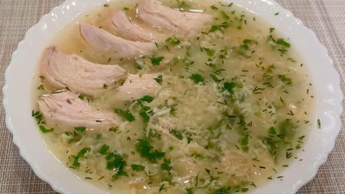 Я сегодня хочу приготовить очень вкусный суп Чихиртма . Этот суп готовится очень просто , но какой же он вкусный . Как раз сейчас на улице прохладно и этот супчик как не как к стати. Давайте готовить ! Что нам понадобится : 1 курочка ( лучше домашняя ) 2 - 3 головки лука 4 яйца 2 ст л муки 30 гр сливочного масла 3 зубчика чеснока Соль перец по вкусу 2 ст л винный уксус Курицу моем , срезаем что нам не нравится. И ставим отвариваться до готовности . В середине варки подсаливаем курочку. Бульон можно процедить . Курочку вынимаем из бульона и разделяем на куски И отправляем опять в наш бульон. Лук режем на мелкий кубик Можно это делать одновременно, пока мяса варится Вы обжарили лук. Сливочное масло разогреть , и на нем обжарить лук . Добавить муку ,хорошо перемешать чтоб не было комочков. Добавить пару половников бульона в лук и на медленном огне протушить лук до готовности ( до растворения ) Всю нашу обжарку добавляем в бульон к мясу. Бульон солим перчим по вкусу. Берем яйца добавляе