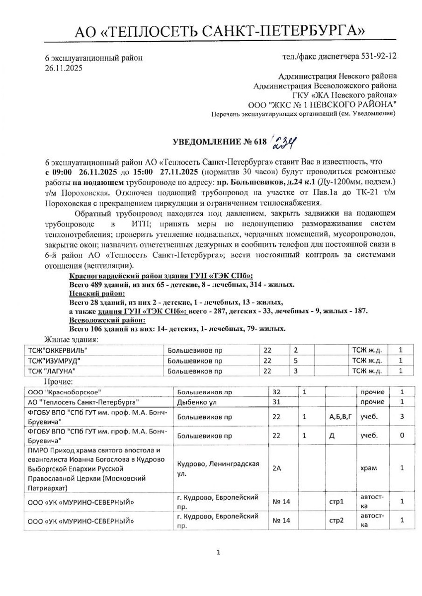 ‼️Напоминаем, что завершение работ на тепломагистрали перенесено на 19:05. В связи с этим горячая вода и отопление будут отсутствовать до указанного времени. ДТП и ЧП Кудрово