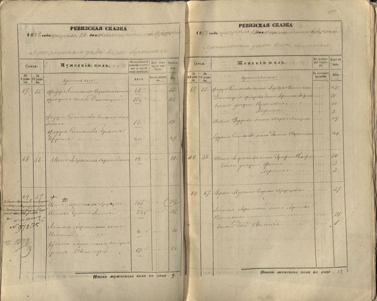 Ревизская сказка 1858 Слово «сказка» здесь не связано с фольклором: оно происходит от старинного значения «запись, документ». Подобные документы представляли собой поимённые списки податного населения (платившего налоги и подлежавшего рекрутской повинности). В данном примере перед вами сказка на помещичьих крестьян села Оброчное Лукояновского уезда Нижегородской губернии.