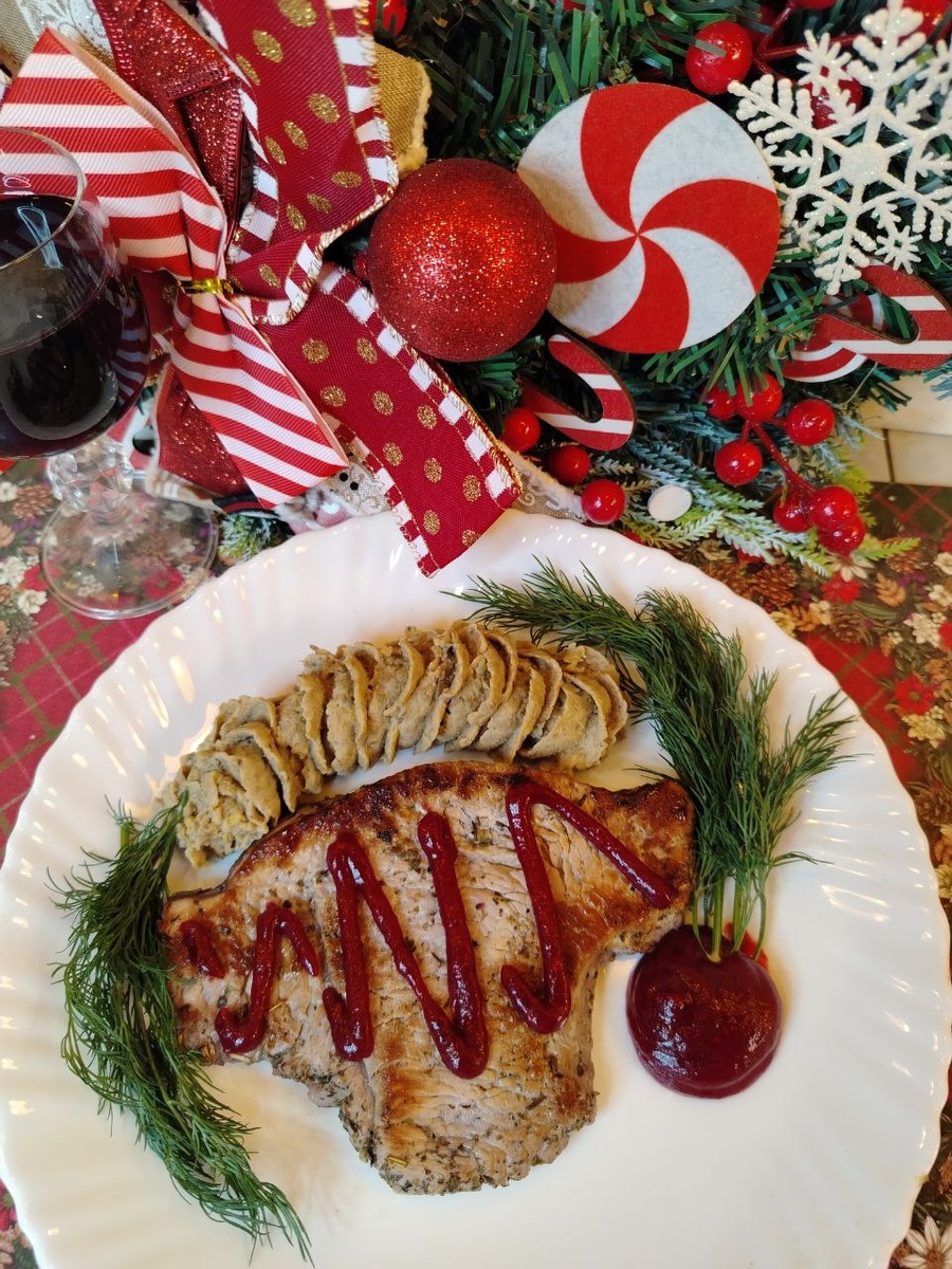 Стейк из индейки с клюквеным соусом и пюре из чечевицы