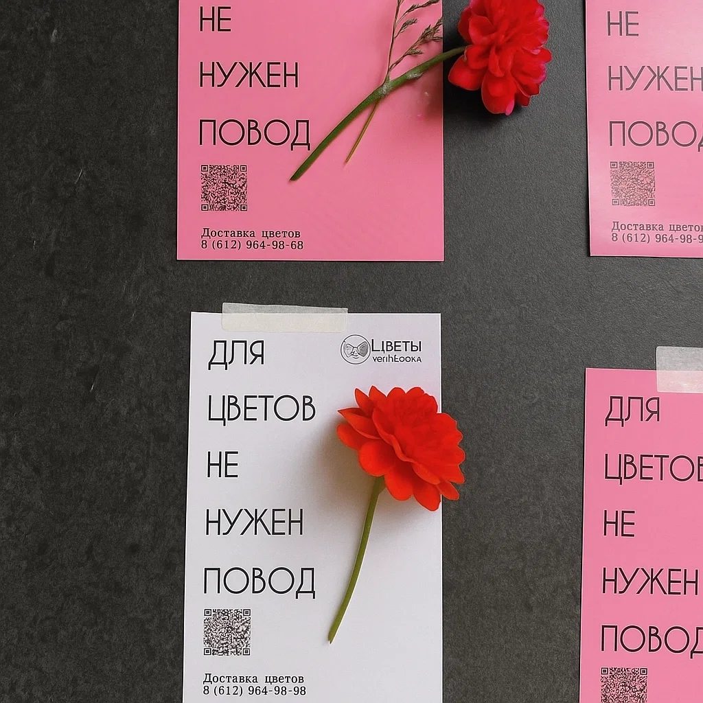 Доставка — отдельная история. Здесь клиент выбирает не просто букет, а эмоцию в моменте. Поэтому реклама для доставки цветов должна подчеркивать главное: скорость, надежность, красоту упаковки.