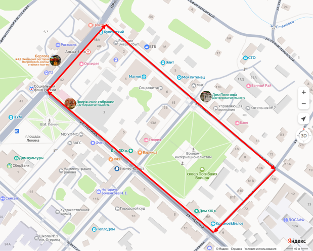 Остановился на ночлег в городе Рославль. Смоленской области Город старинный. Даже старше Москвы. В 1137 году основан. Князем Ростиславом Мстиславичем, внуком Владимира Мономаха. Изначально город так и назывался. Ростиславль. Но со временем название подсократили. Перед ужином решил прогуляться по городу. Старинные дома посмотреть. Куда пойти? Естественно, на главную улицу. В советские годы в любом городе главную улицу именем Ленина называли. После перестройки это имя с карт городов повсеместно исчезло. А вот рославличане на поводу у демократических преобразований не пошли. Оставили память о вожде. Перед улицей Ленина припарковаться не удалось. Свернул на следующую улицу- улицу Красина- и хотел уже было вернуться к улице Ленина. Но увидел- и на Красина старые дома есть. Поэтому получился такой маршрут. Не слишком длинный. Но познавательный. Пройтись сначала по Красина. До Каляевской. Там перейти на Ленина. И по Пролетарской вернуться к машине. В самом начале улицы Красина в Рославле боль