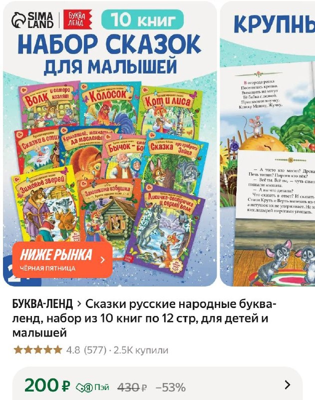 Сказки русские народные буква-ленд, набор из 10 книг по 12 стр, для детей и малышей https://market.yandex.ru/cc/87JvSC Цена на 🛒: 200 ₽ | 430 ₽ рейтинг: 4.8 ⭐️ выгодная цена 💲 ✅ Подписаться 🔣 Бот с промокодами